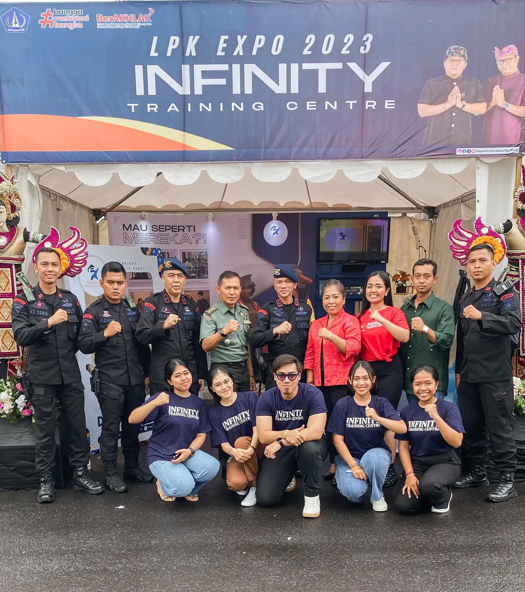 Hadir juga Dansat Brimob Polda Bali KBP Firdaus Wulanto, S.I.K., dan Juga Staf Ahli Kodam IX Udayana Kol Inf Danit Beni. Dan tentunya Bapak Kepala Dinas Tenaga Kerja Kabupaten Badung Eka Murtawan tentu didampingi oleh Founder Infinity Training Centre Ni Putu Asteria Yuniati Spd MIKom
