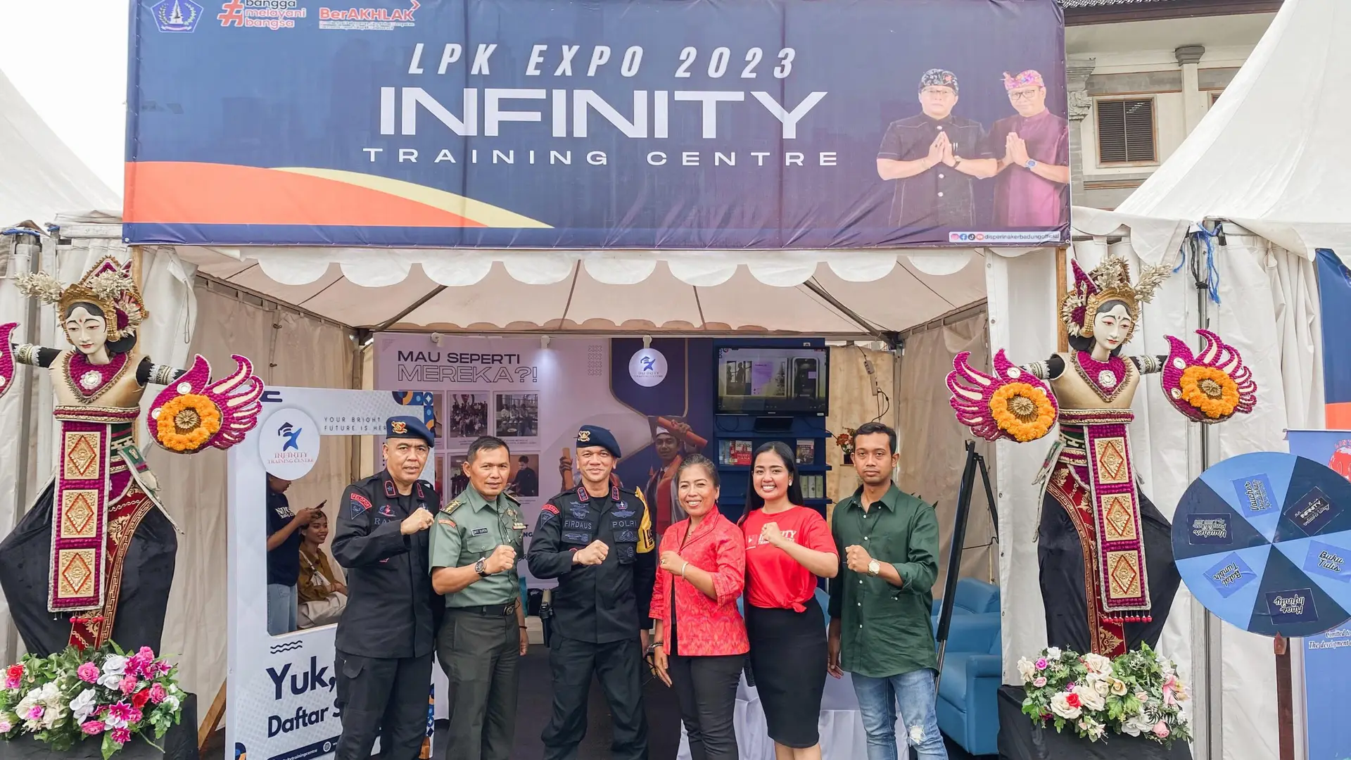 Also present were Dansat Brimob Polda Bali KBP Firdaus Wulanto, S.I.K., and also Expert Staff of Kodam IX Udayana Col Inf Danit Beni. And of course, Head of the Badung Regency Manpower Service, Eka Murtawan, of course, accompanied by the Founder of Infinity Training Center Ni Putu Asteria Yuniati Spd MIKom